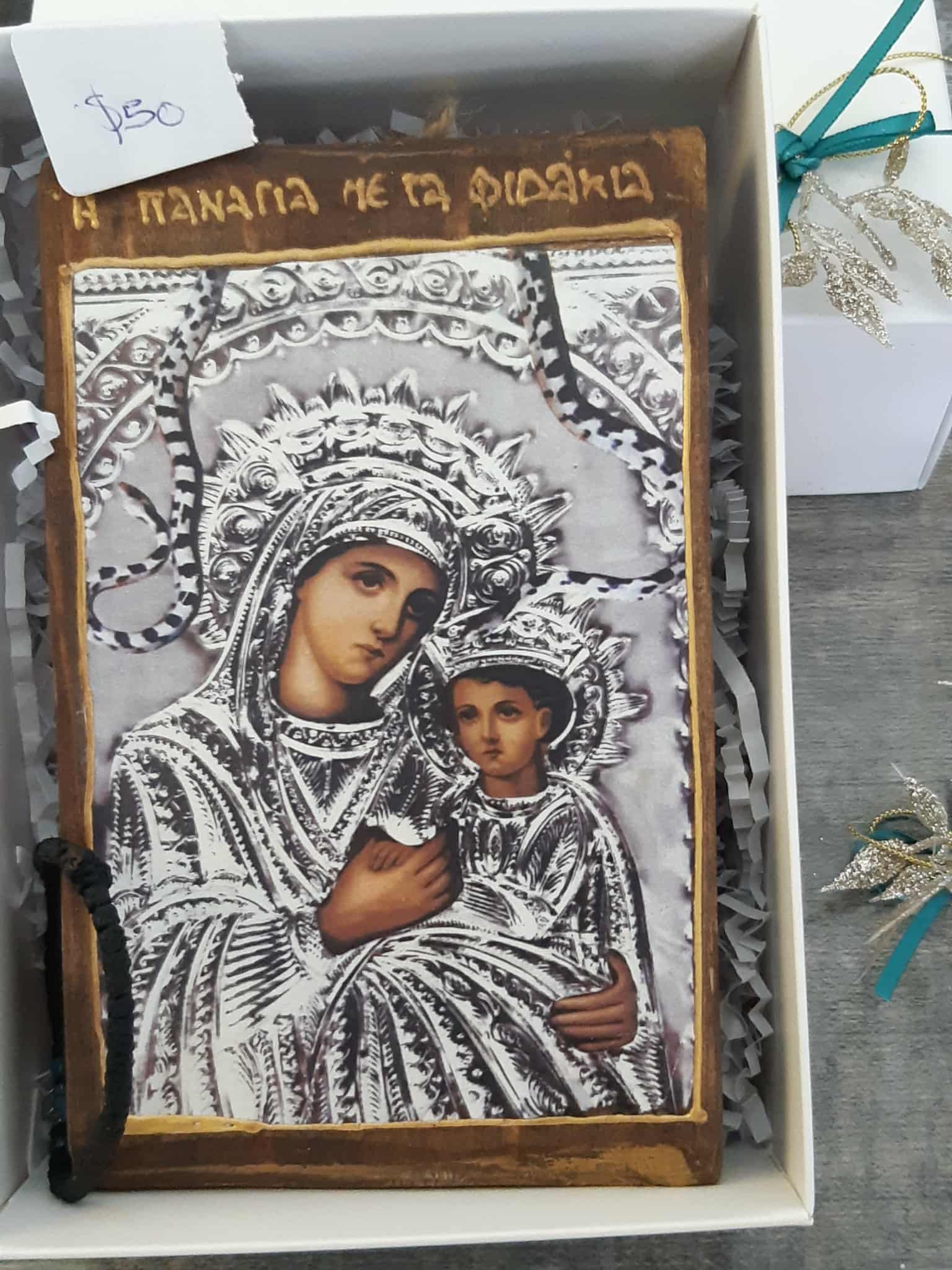 Every Icon in the hamper is made in Greece, making it a meaningful gift for loved ones, for personal devotion, or as a special addition to your home altar during the festive season.